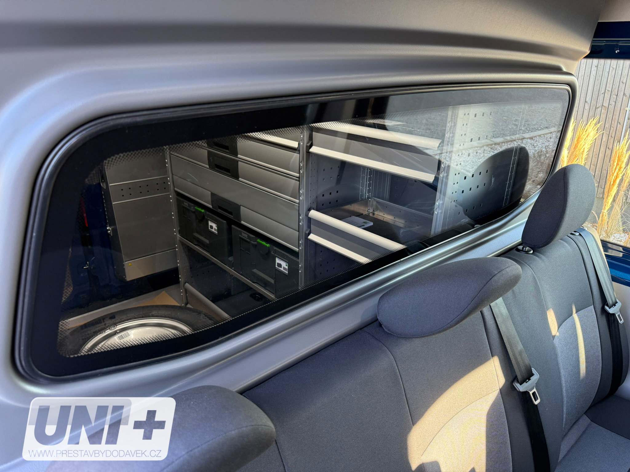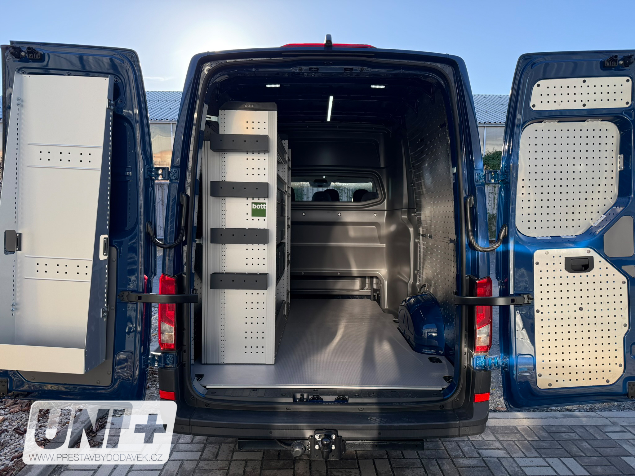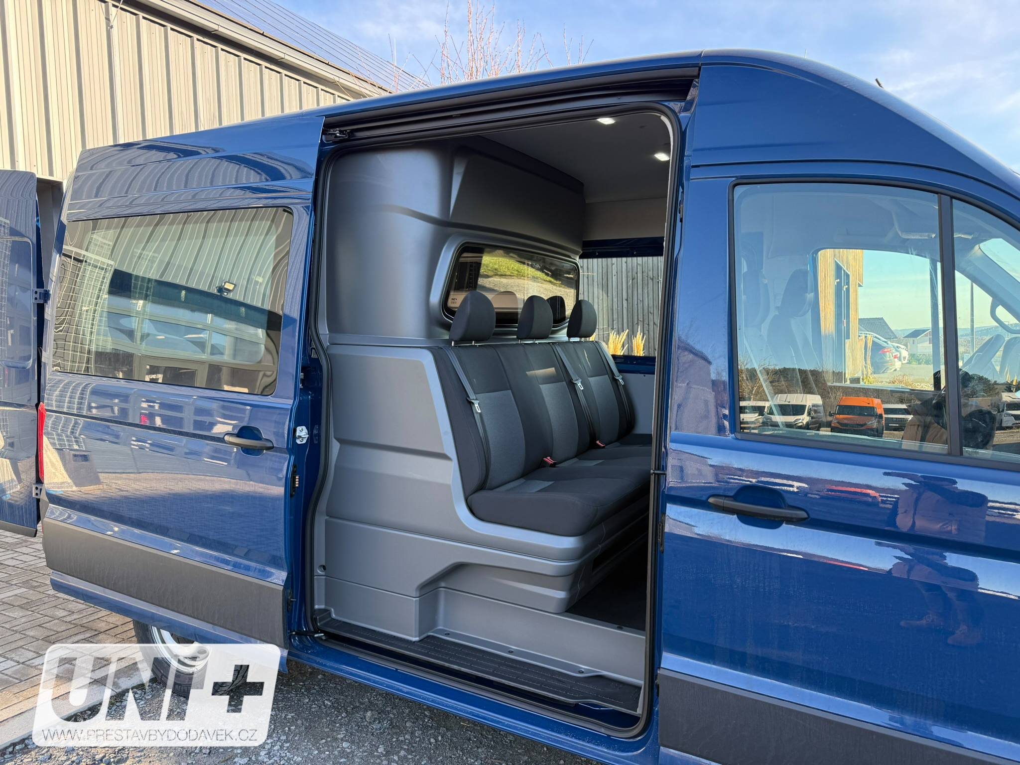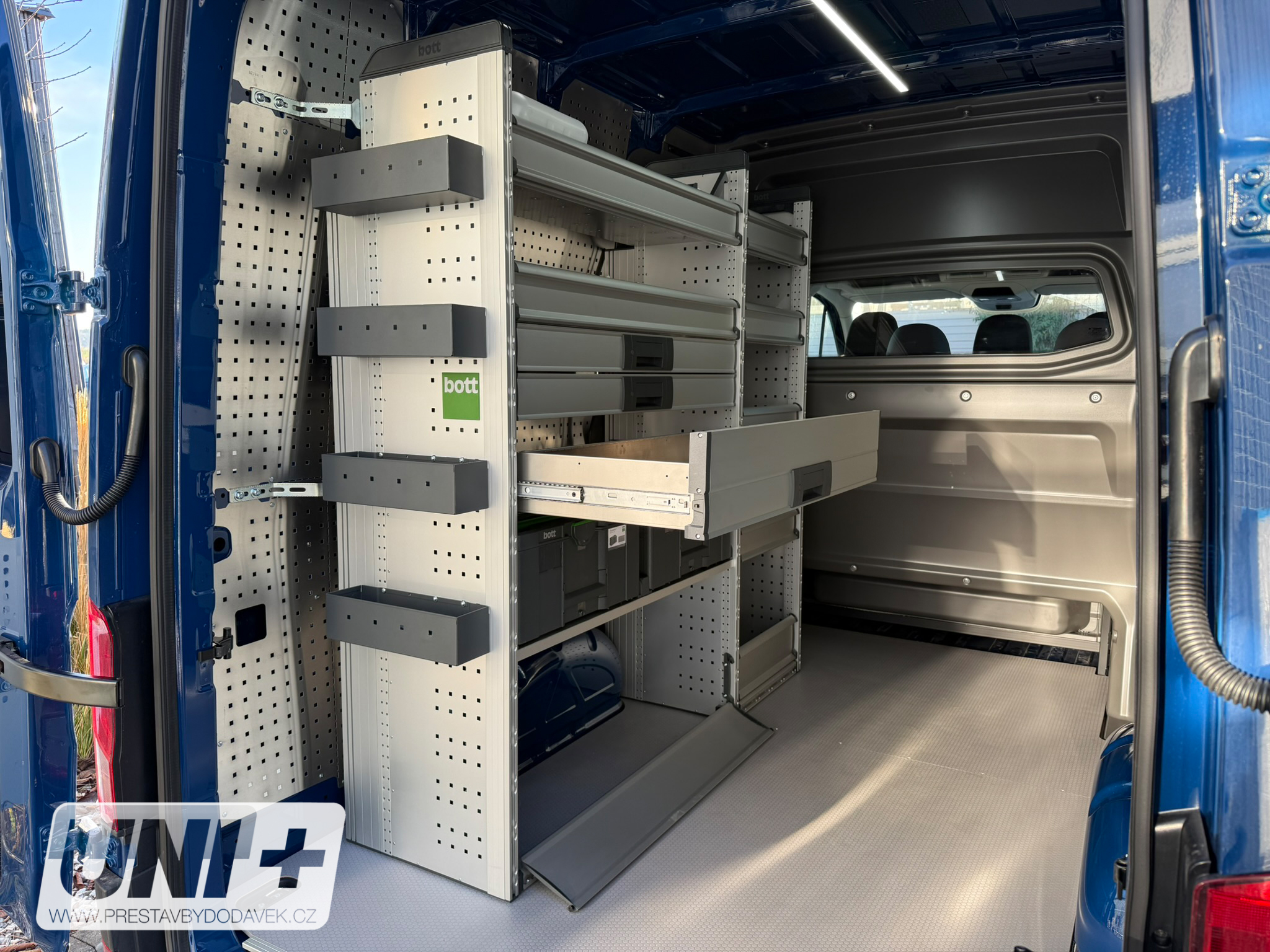 Z původního plechového vanu 🚐 Volkswagen Crafter jsme vytvořili víceúčelový vůz typu CrewCab „Skříň PLUS“ s celkovým počtem 6 míst k sezení včetně řidiče. Vůz jsme prosklili a vybavili homologovanou vestavbou Snoeks CrewCab Comfort. Nákladový prostor dostal novou podlahu a regálový systém BOTT 🛠️ pro dokonalou organizaci nářadí. Boční stěny jsme osadili perfoplechem, který umožňuje variabilní umístění háčků a příslušenství, a zadní dveře doplnili hliníkovým držákem násadového nářadí 🔧. Výsledkem je praktický Crafter Skříň PLUS připravený pro stavební a montážní tým 👷♂️👷♀️.